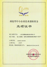 科技型中小企業(yè)技術(shù)創(chuàng)新基金立項(xiàng)證書