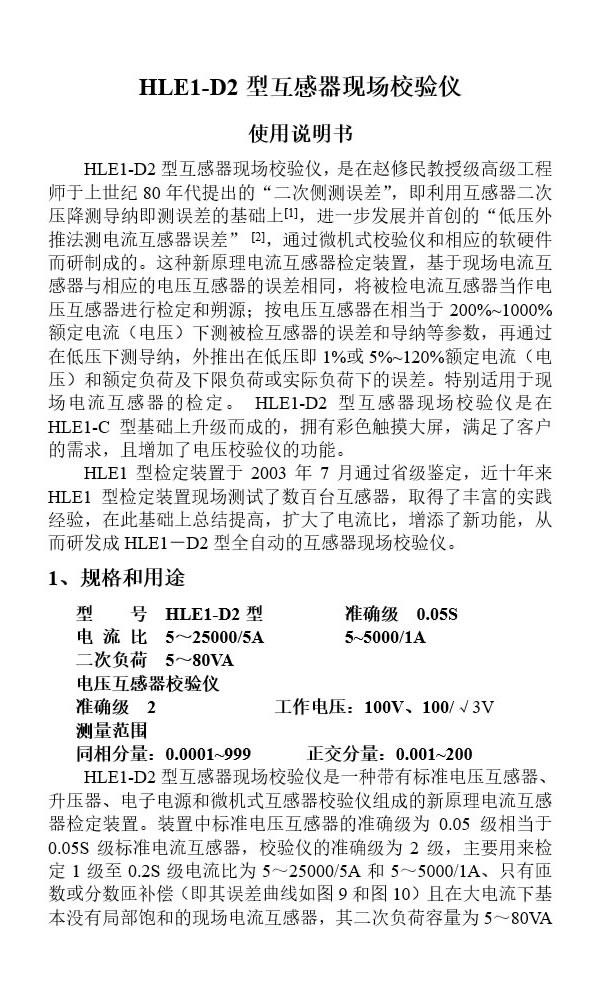 HLE1-D2型 互感器現(xiàn)場(chǎng)校驗(yàn)儀 使用說(shuō)明書(shū)